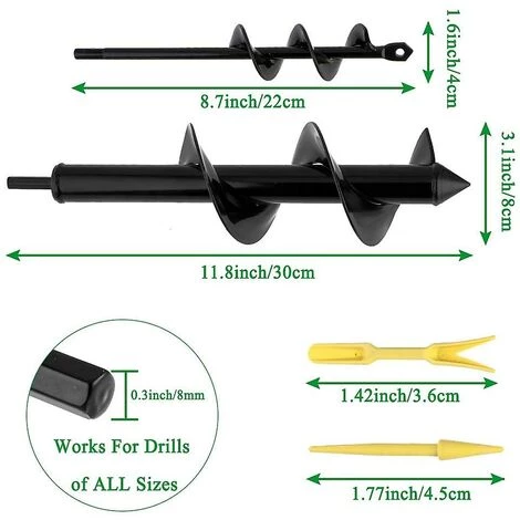 Vous recevrez : une paire de gants de jardin géniaux et deux tailles différentes de forets pour répondre à vos différents besoins : le gros foret est convient pour creuser des trous larges et profonds (Ø80cm); un autre petit foret convient aux petits trous peu profonds (Ø40cm).