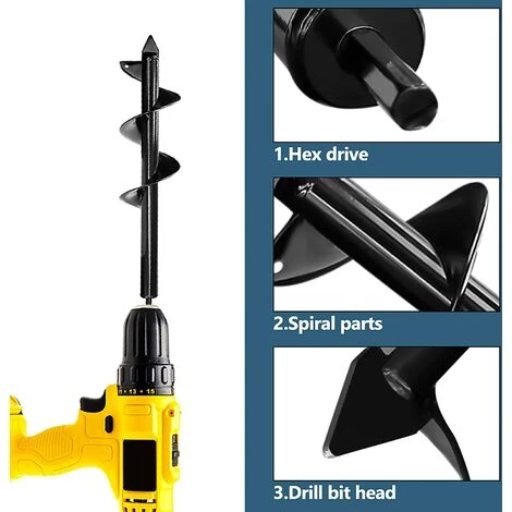 【Facile à utiliser】 Il suffit de fixer le foret de tarière sur la pince de forage de la tarière de jardin à utiliser, de tenir la perceuse électrique à deux mains pour la plantation, puis de l’ouvrir pour creuser. Le foret hélicoïdal de tarière de jardin tire le sol vers l’arrière et vous obtiendrez le trou arrière parfait. Nous vous recommandons d’utiliser une perceuse électrique ou une perceuse sans fil de 18 V et plus. Astuce : avant d’installer le foret de tarière, veuillez tourner au ralenti pendant quelques secondes pour vérifier si le support de foret est stable. La tarière à bulbe pour perceuse sans fil vous aidera à percer des centaines de trous de différentes tailles et largeurs en quelques minutes, en disant adieu au jardinage manuel fastidieux. , mis à niveau en tant que conception monobloc, la pièce de liaison entre l’arbre et la partie hexagonale ne se cassera pas facilement comme les autres produits sur le marché. Assurez-vous que le foret à tarière ne se cassera pas sous une rotation à grande vitesse et assurera la durée de vie du foret à tarière pour la plantation. La couche extérieure est recouverte d’une peinture de haute qualité, brillante et belle.【Large utilisation】2 Différentes tailles de forets hélicoïdaux pour tarière de jardin répondront à vos différents besoins de plantation pendant la saison de plantation. Le foret en spirale pour tarière de jardin vous aide non seulement à faire pousser facilement des plantes en pot, des fleurs, des arbres à racines nues pendant la saison de plantation, mais vous aide également à percer des trous sur les parasols de plage et les tentes extérieures. la saison de plantation, mais vous aide également à percer des trous lors de l’utilisation de parasols de plage et de la construction de tentes d’extérieur. variétés et descriptions.) S’il y a des problèmes par la suite, n’hésitez pas à nous contacter. Soyez assuré de l’achat.