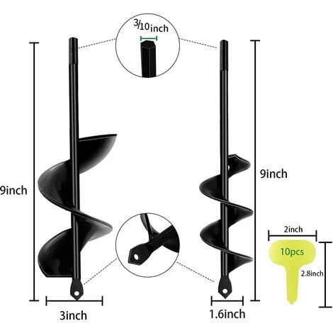 【Facile à utiliser】 Il suffit de fixer le foret de tarière sur la pince de forage de la tarière de jardin à utiliser, de tenir la perceuse électrique à deux mains pour la plantation, puis de l’ouvrir pour creuser. Le foret hélicoïdal de tarière de jardin tire le sol vers l’arrière et vous obtiendrez le trou arrière parfait. Nous vous recommandons d’utiliser une perceuse électrique ou une perceuse sans fil de 18 V et plus. Astuce : avant d’installer le foret de tarière, veuillez tourner au ralenti pendant quelques secondes pour vérifier si le support de foret est stable. La tarière à bulbe pour perceuse sans fil vous aidera à percer des centaines de trous de différentes tailles et largeurs en quelques minutes, en disant adieu au jardinage manuel fastidieux. , mis à niveau en tant que conception monobloc, la pièce de liaison entre l’arbre et la partie hexagonale ne se cassera pas facilement comme les autres produits sur le marché. Assurez-vous que le foret à tarière ne se cassera pas lors d’une rotation à grande vitesse et assurez la durée de vie du foret à tarière pour la plantation. La couche extérieure est recouverte d’une peinture de haute qualité, brillante et belle.【Foret solide】 Notre foret de jardin est solide à l’intérieur, par rapport au foret creux, un foret solide est plus difficile à déconnecter. La tête pointue est plus facile à traverser le sol plus dur que la tête ronde, ce qui est pratique pour planter ou assouplir le sol. 【Ensemble économique】 Comprend un foret solide de jardin 3×9 et 1,6×9 et 10 onglets en T (vous pouvez étiquette avec différents noms, dates de plantation, variétés et descriptions.) En cas de problème par la suite, n’hésitez pas à nous contacter. Soyez assuré de l’achat.