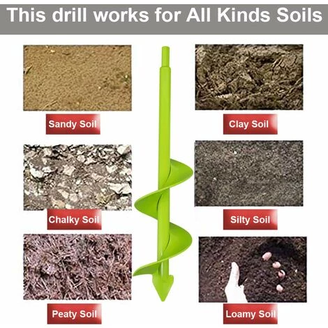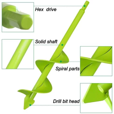 【Facile à utiliser】 Il suffit de fixer le foret de tarière sur la pince de forage de la tarière de jardin à utiliser, de tenir la perceuse électrique à deux mains pour la plantation, puis de l’ouvrir pour creuser. Le foret hélicoïdal de tarière de jardin tire le sol vers l’arrière et vous obtiendrez le trou arrière parfait. Nous vous recommandons d’utiliser une perceuse électrique ou une perceuse sans fil de 18 V et plus. Astuce : avant d’installer le foret de tarière, veuillez tourner au ralenti pendant quelques secondes pour vérifier si le support de foret est stable. La tarière à bulbe pour perceuse sans fil vous aidera à percer des centaines de trous de différentes tailles et largeurs en quelques minutes, en disant adieu au jardinage manuel fastidieux. , mis à niveau en tant que conception monobloc, la pièce de liaison entre l’arbre et la partie hexagonale ne se cassera pas facilement comme les autres produits sur le marché. Assurez-vous que le foret à tarière ne se cassera pas lors d’une rotation à grande vitesse et assurez la durée de vie du foret à tarière pour la plantation. La couche extérieure est recouverte d’une peinture de haute qualité, brillante et belle.【Foret solide】 Notre foret de jardin est solide à l’intérieur, par rapport au foret creux, un foret solide est plus difficile à déconnecter. La tête pointue est plus facile à traverser le sol plus dur que la tête ronde, ce qui est pratique pour nous de planter ou d’assouplir le sol. 【Large utilisation】 Le foret en spirale de tarière de jardin vous aide non seulement à cultiver facilement des plantes en pot, des fleurs, nues -Enracinez les arbres pendant la saison de plantation, mais vous aide également à percer des trous sur les parasols et les tentes extérieures. Ce produit comprend un foret solide de jardin de 7,6 x 30,5 cm et 2 mini outils de jardin (vous aide à transplanter les semis et à percer des trous de plantes en pot.)