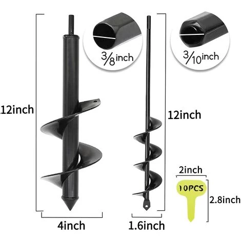 【Facile à utiliser】 Il suffit de fixer le foret de tarière sur la pince de forage de la tarière de jardin à utiliser, de tenir la perceuse électrique à deux mains pour la plantation, puis de l’ouvrir pour creuser. Le foret hélicoïdal de tarière de jardin tire le sol vers l’arrière et vous obtiendrez le trou arrière parfait. Nous vous recommandons d’utiliser une perceuse électrique ou une perceuse sans fil de 18 V et plus. Astuce : avant d’installer le foret de tarière, veuillez tourner au ralenti pendant quelques secondes pour vérifier si le support de foret est stable. La tarière à bulbe pour perceuse sans fil vous aidera à percer des centaines de trous de différentes tailles et largeurs en quelques minutes, en disant adieu au jardinage manuel fastidieux. , mis à niveau en tant que conception monobloc, la pièce de liaison entre l’arbre et la partie hexagonale ne se cassera pas facilement comme les autres produits sur le marché. Assurez-vous que le foret à tarière ne se cassera pas sous une rotation à grande vitesse et assurera la durée de vie du foret à tarière pour la plantation. La couche extérieure est recouverte d’une peinture de haute qualité, brillante et belle.【Large utilisation】2 Différentes tailles de forets hélicoïdaux pour tarière de jardin répondront à vos différents besoins de plantation pendant la saison de plantation. Le foret en spirale pour tarière de jardin vous aide non seulement à faire pousser facilement des plantes en pot, des fleurs, des arbres à racines nues pendant la saison de plantation, mais vous aide également à percer des trous sur les parasols de plage et les tentes extérieures. la saison de plantation, mais vous aide également à percer des trous lors de l’utilisation de parasols de plage et de la construction de tentes d’extérieur. et descriptions.) S’il y a des problèmes par la suite, n’hésitez pas à nous contacter. Soyez assuré de l’achat.