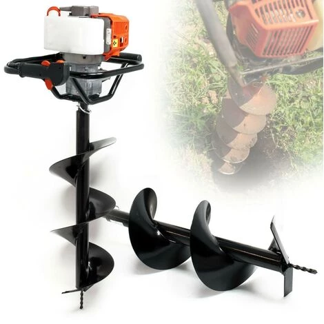 Cette tarière thermique est le soutien idéal pour vos travaux dans le jardin et convient aussi bien pour une utilisation à la maison que dans le domaine professionnel de la sylviculture, de jardinage, de l’aménagement paysager et l’horticulture.Que ce soit pour les plantes, les poteaux de clôture, les fondations ou bien les puits de drainage : afin d’effectuer les travaux de perçage nécessités, vous ferez le bon choix en achetant cet outil robuste et durable, grâce à une puissance de moteur à essence 2 temps de 1,4 kW avec une cylindrée de 52cm³. Les poignées ergonomiques d’une part et le poids vide de 9,5 kg d’une autre, garantissent une manipulation confortable tout en facilitant le travail.