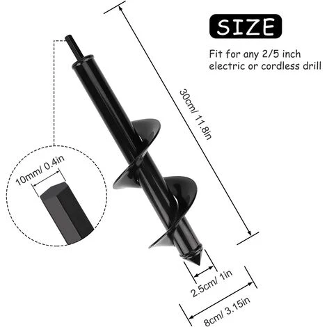 【Compatible】 Utilisez une perceuse de 18 V ou plus à basse vitesse (lente), percez dans le sol ou le paysage applicable tout droit sur 30 cm et soulevez hors du trou; Pour les perceuses sans fil, une perceuse de 14 V minimum est recommandée.