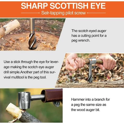 【Multifonctionnel】: Cet outil de survie multifonctionnel est un outil de nail art. La tarière a un point de coupe pour une clé à clous. Utilisez des clous de la taille d’une perceuse pour enfoncer les branches.