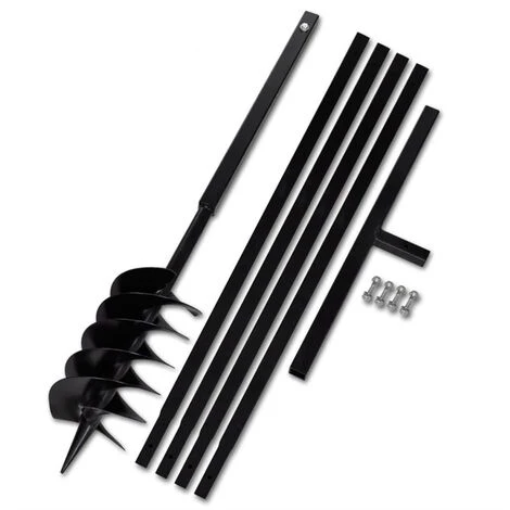 - La livraison inclut une tarière de sol, un manche, 4 tubes d’extension et quelques vis.