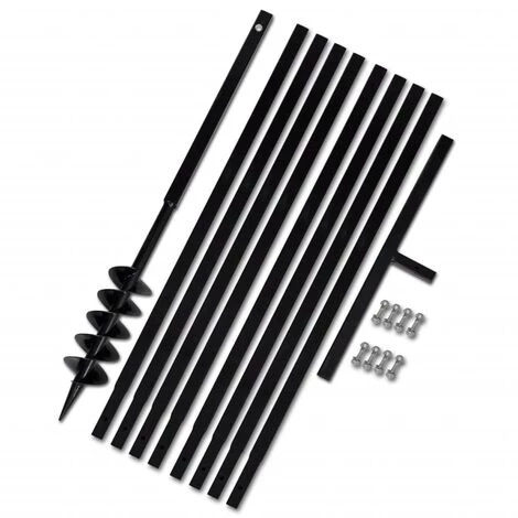 - La livraison inclut une tarière de sol, un manche, 8 tubes d’extension et quelques vis.