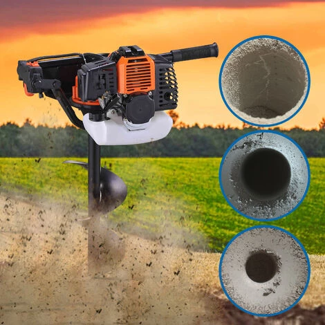 Creusez n’importe quel type de sol avec cette tarière thermique et ses trois mèches. Son moteur de 52 cm3 est polyvalent et décuple assez de puissance pour un forage précis. Robuste et fonctionnelle avec sa poignée ergonomique en mousse, la tarière thermique vous apporte du confort pendant votre travail, et vous aide à creuser des trous de différentes tailles, pour planter arbres, barrières et poteaux. La tarière est livrée avec trois mèches mesurant 100, 150, et 200 mm, ainsi q’une extension de 60 cm, un sac à outils, des gants, et un petit réservoir de mélange.