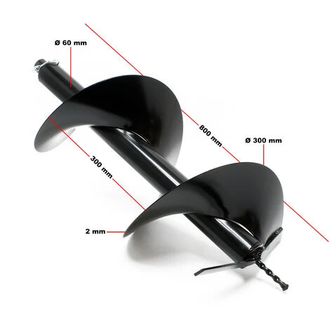 La tarière est équipée d’un moteur de 3 CV d’une cylindrée de 63,3ccm qui peut atteindre jusqu’à 183 tours par minute. Les forets en fonte robuste d’un diamètre de 300 mm, garantissent un forage de manière précise et propre, dans presque tous les types de sol.
